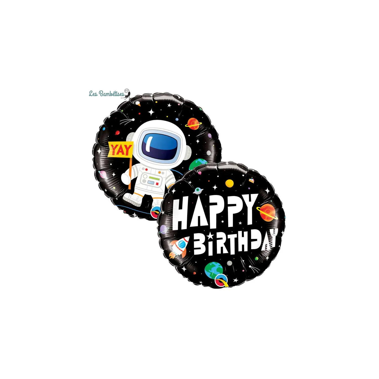 Embarquez pour une aventure intergalactique avec notre ballon Espace & Astronaute "Happy Birthday" de 46 cm. Ce ballon unique, imprimé de planètes et de l'inscription "Happy Birthday" d'un côté et d'un astronaute flottant dans l'espace de l'autre, est l'accessoire parfait pour les anniversaires à thème spatial.