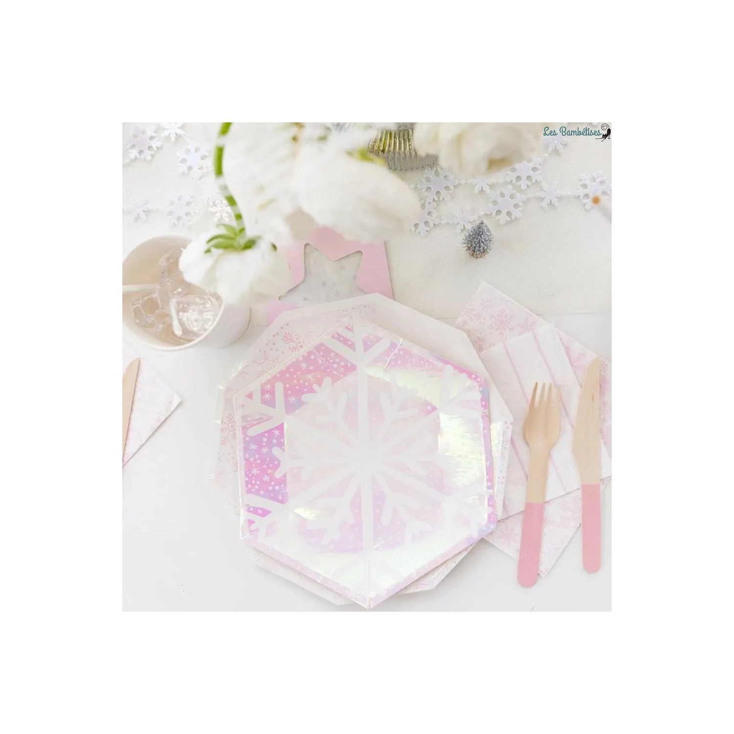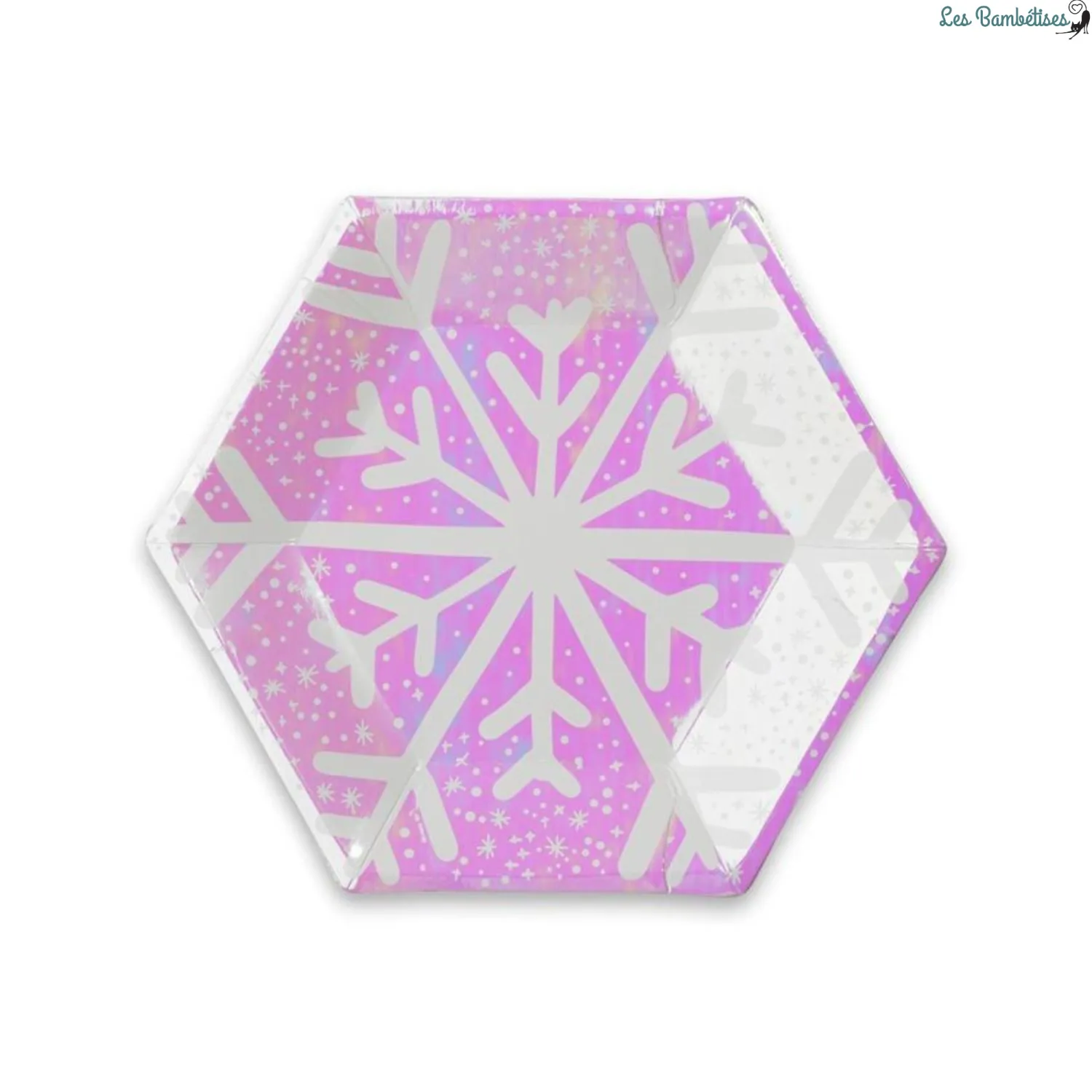 Transformez vos événements festifs en véritables moments magiques avec nos 8 petites assiettes irisées Flocons de Neige !