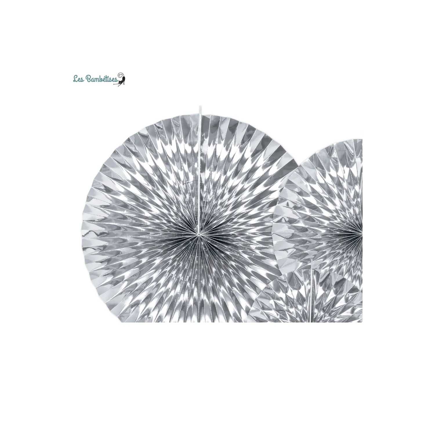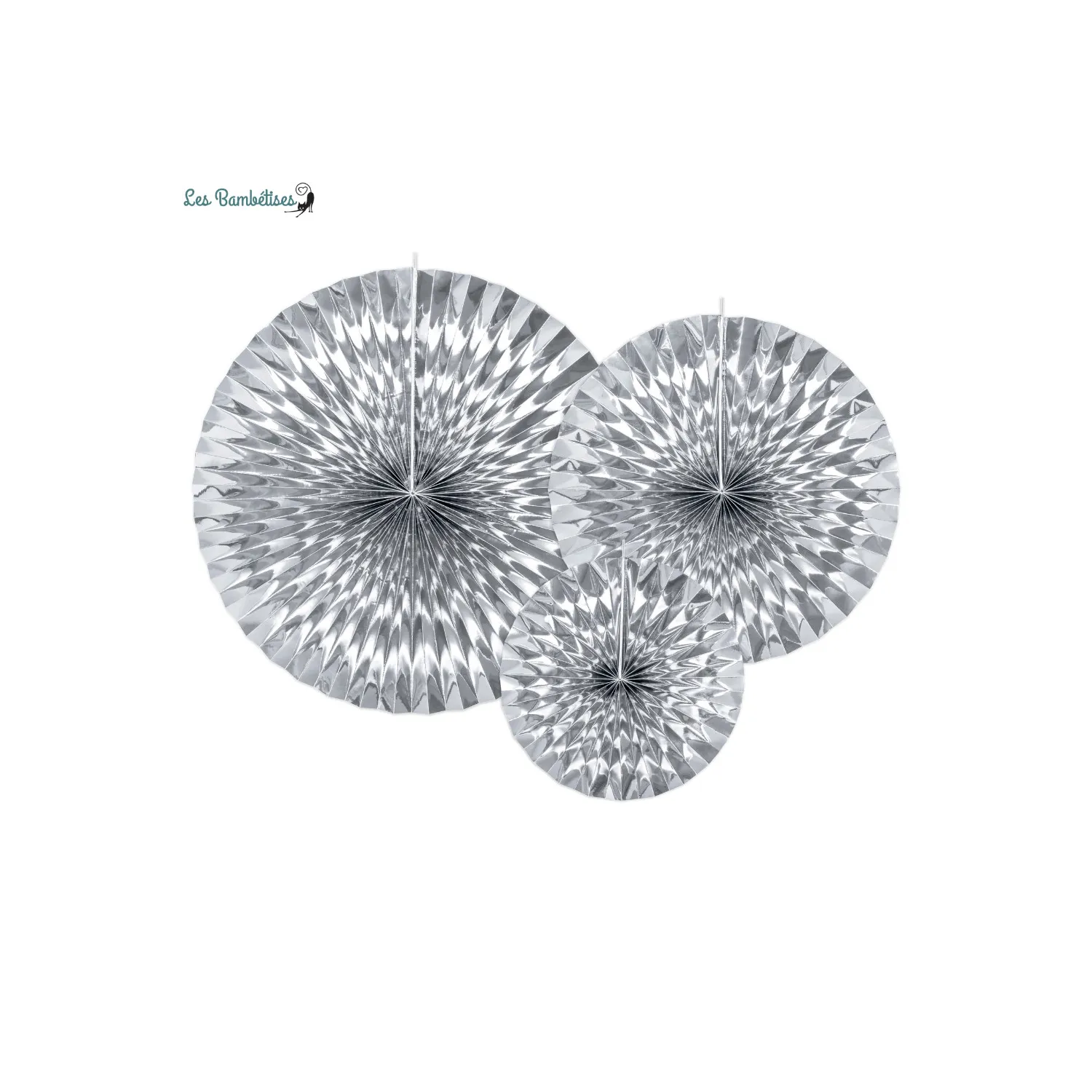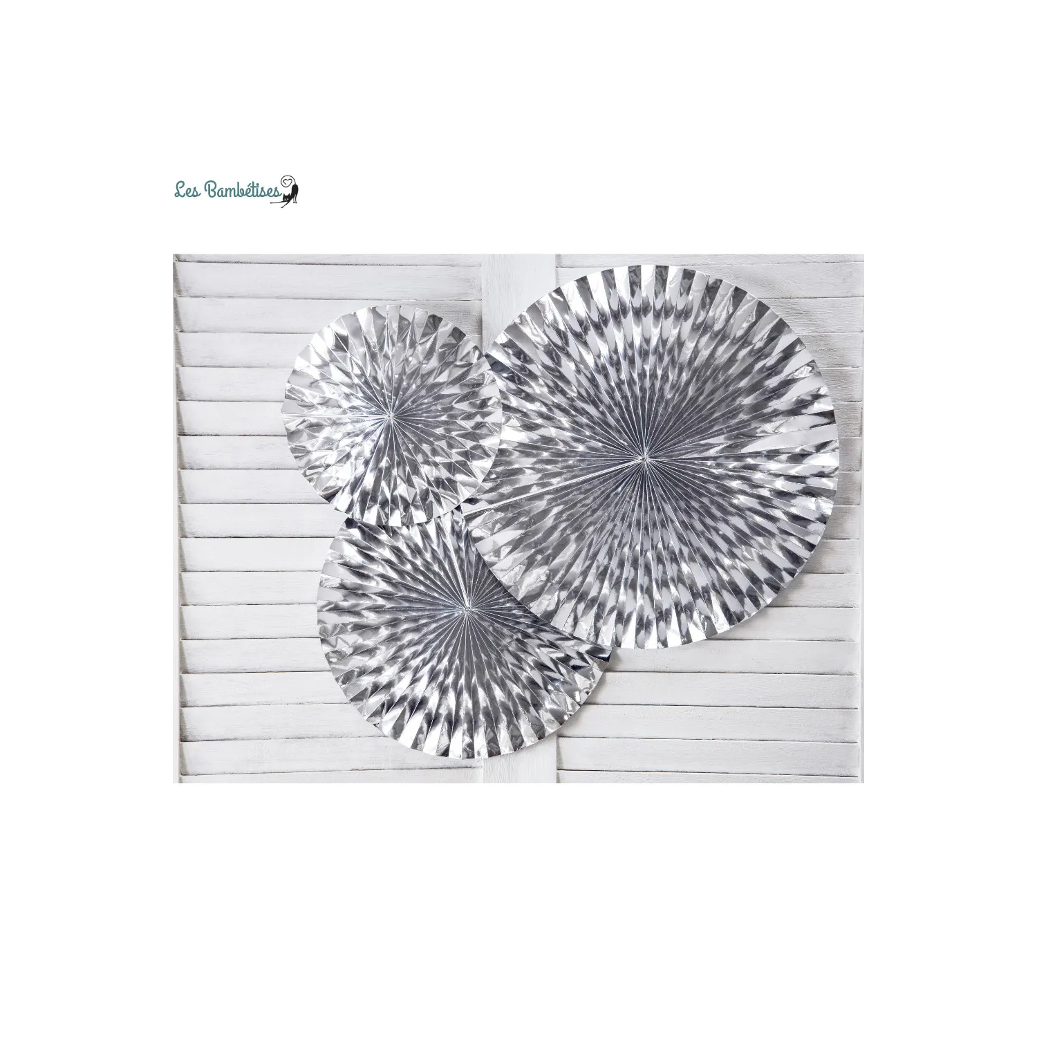 Apportez une touche d'élégance et de scintillement à vos événements avec cet ensemble de 3 rosaces argentées en carton.